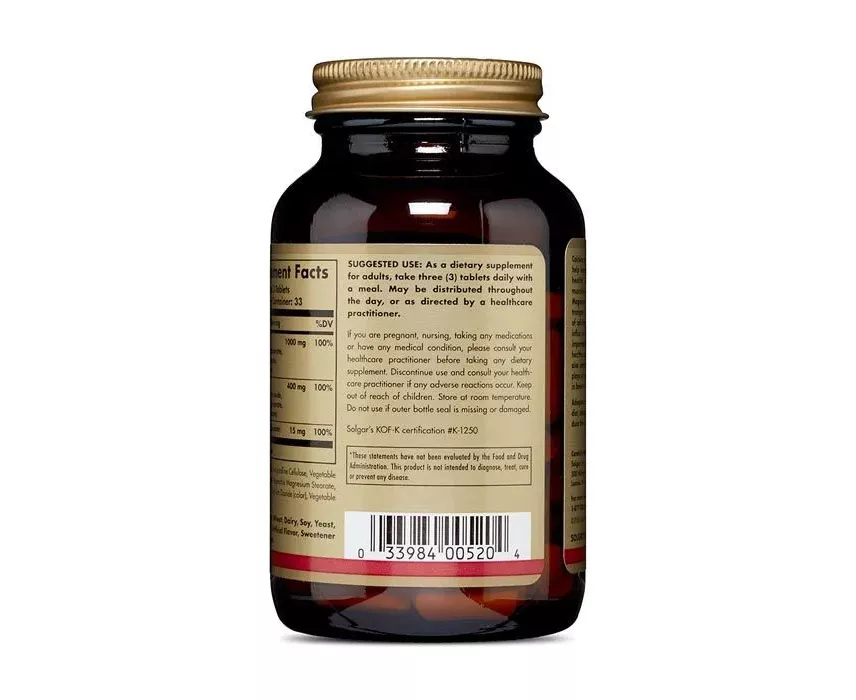 تابلت الكالسيوم - الماغنيسيوم بلس - الزنك من سولجار 100