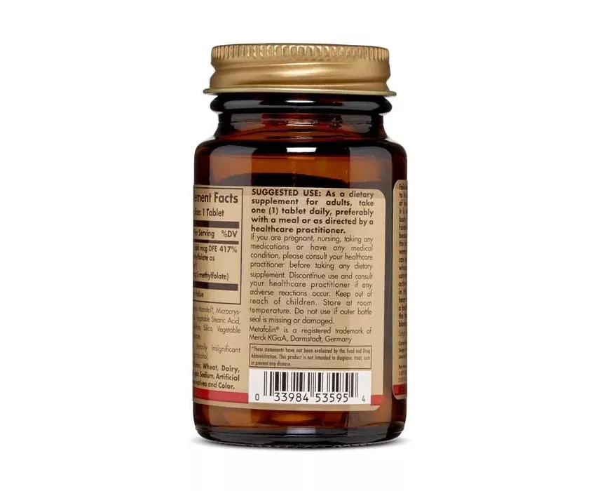 Solgar Folate (as Metafolin), the body ready form of Folic Acid, is a B Vitamin and contributes to several processes within the body, with the most well-known one its support of maternal tissue growth during pregnancy. Folic acid is a supplement which is advised to take by pregnant women and those trying to conceive. It can be found in different foods, such as dark green leafy vegetables, but to make sure you reach the adequate level of intake, especially before and after conception, taking a supplement is highly recommended. Low folic acid levels have been proven a risk factor in the development of neural defects in the developing foetus.