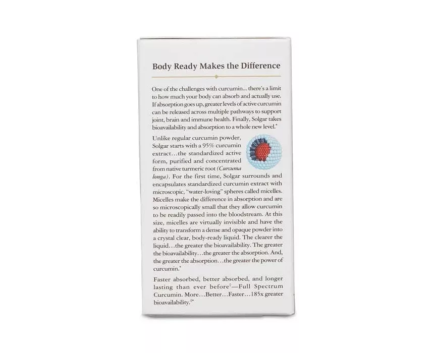 One of the challenges with curcumin...there's a limit to how much your body can absorb and actually use. If absorption goes up, greater levels of active curcumin can be released across multiple pathways to support joint, brain and immune health. Finally, Solgar takes bioavailability and absorption to a whole new level.