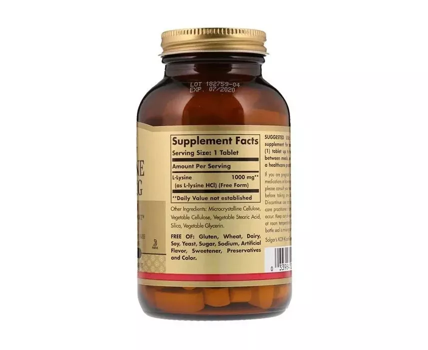 The formulation of Solgar L-Lysine 1000mg provides the body with Free Form L-Lysine in order to promote optimal absorption and assimilation into the body's systems.