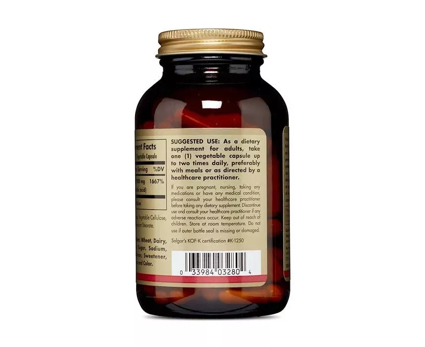 كبسولات نباتية فيتامين ج من سولجار 1000مج - 100's