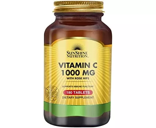 تابلت فيتامين سي بتركيز 1000 مللي جرام مع ثمار الورد من صن شاين نيوتريشين 180