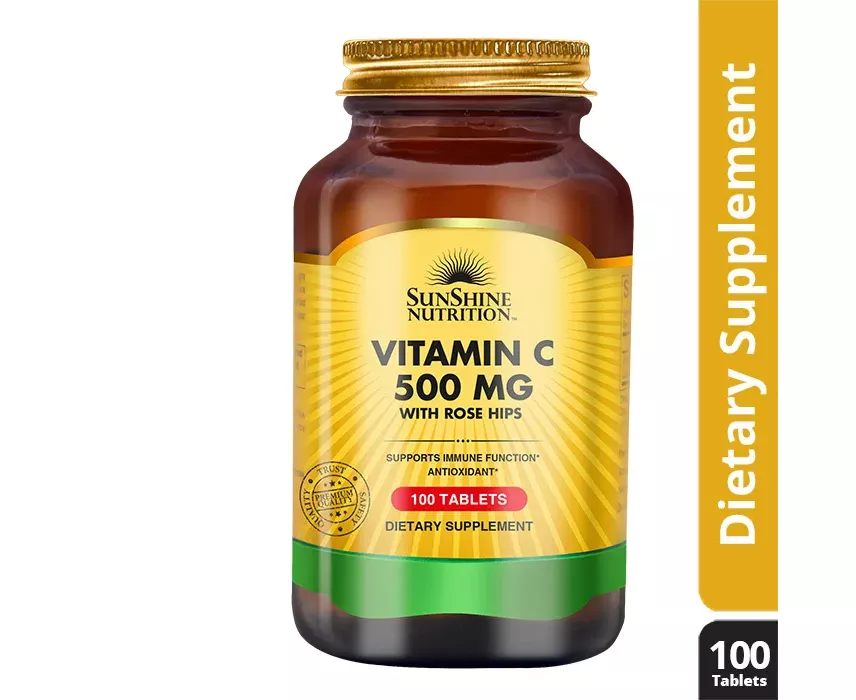 Sunshine Nutrition’s Vitamin C 500 mg Tablet as ascorbic acid is a water-soluble vitamin that functions as a powerful antioxidant and helps neutralize free radicals in the body. It is also an important component to maintain a healthy immune system and additionally helps support collagen production.