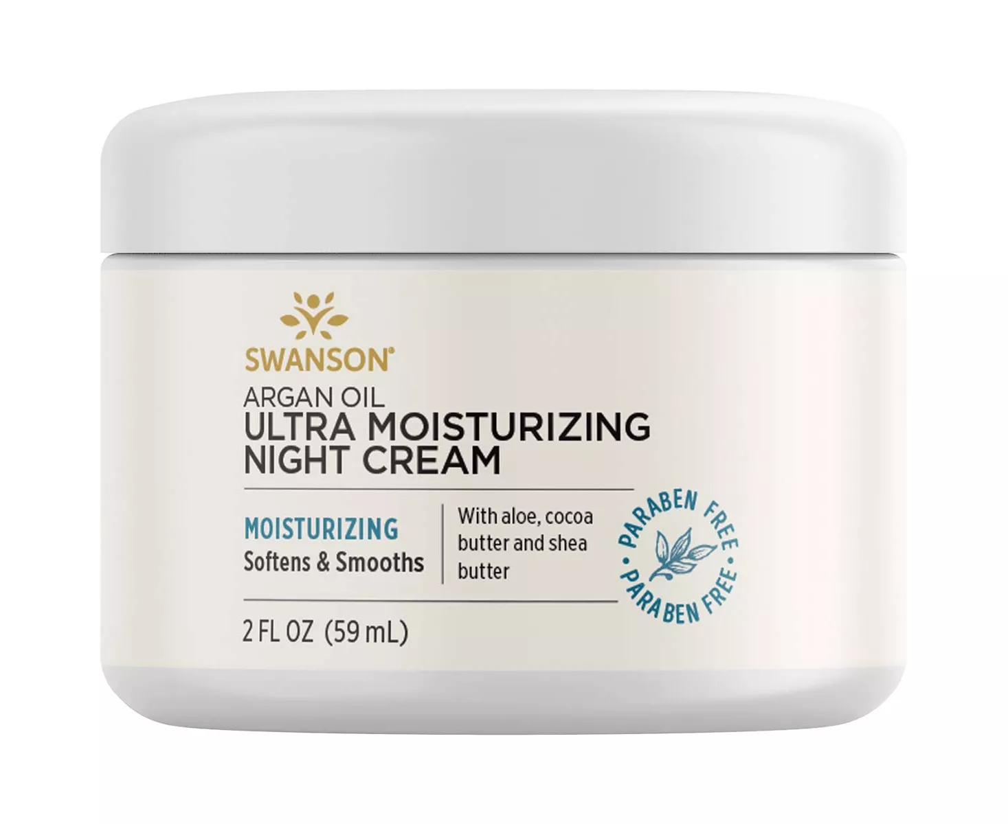 Swanson Argan Oil Ultra Moisturizing Night Cream is formulated with effective and nourishing Argan Oil that helps moisturize and smooth the skin, and Cocoa Butter and Shea Butter, which are known to smooth and tighten skin, prevent aging, reduce wrinkles and acne, and help fight against Gel infections