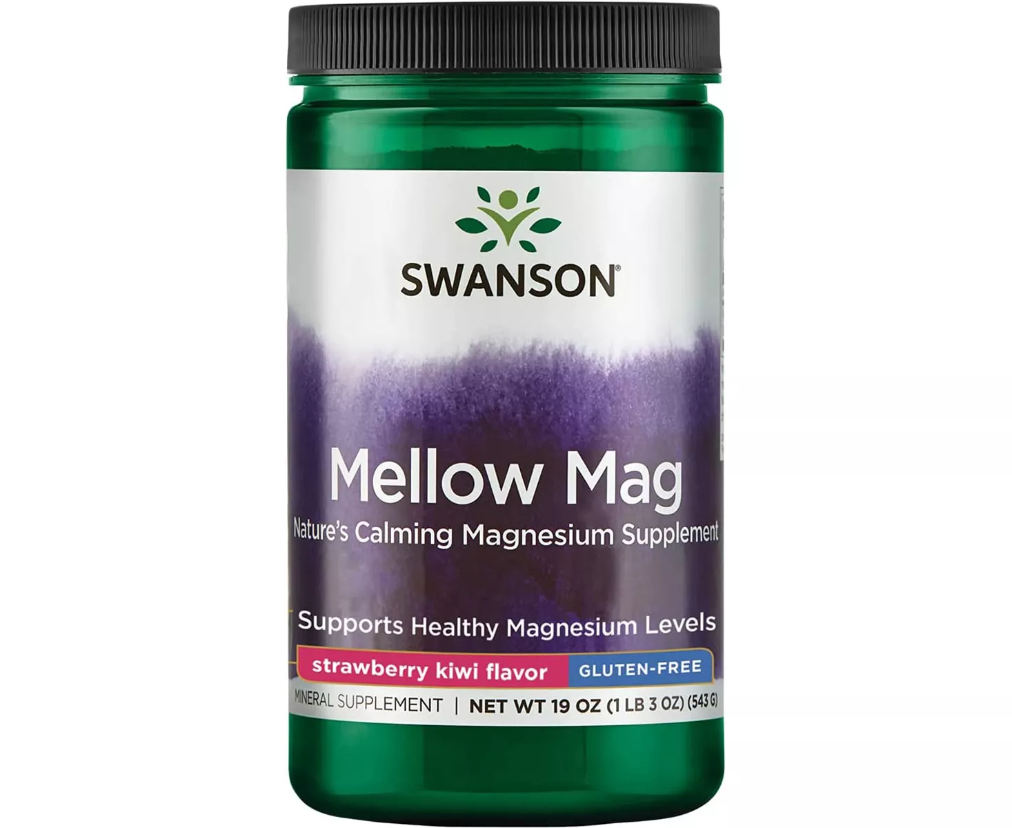 Swanson Mellow Mag Powder is made with a naturally calming mineral, magnesium, to help support healthy moods and reduce stress while restoring healthy magnesium levels. Magnesium relaxes muscles and promotes healthy nerve and receptor function, which may lead to better sleep. A great-tasting magnesium drink that supports relaxation and helps fight stress 330 mg of magnesium per serving Also aids in the body's absorption of calcium to promote bone strength Vegetarian, Gluten-Free, Non-GMO Available in 3 natural flavors - strawberry, kiwi, magnesium, raspberry, lemon and orange Helps boost energy, as well Perceptual function and reasoning, it is also essential for cellular energy production. Help boost your exercise routine and mental alertness, while reducing anxiety. Magnesium also helps with potassium absorption, which may reduce muscle cramps and tightness due to daily use, stress, and exercise. Promotes cognitive function and cardiovascular health