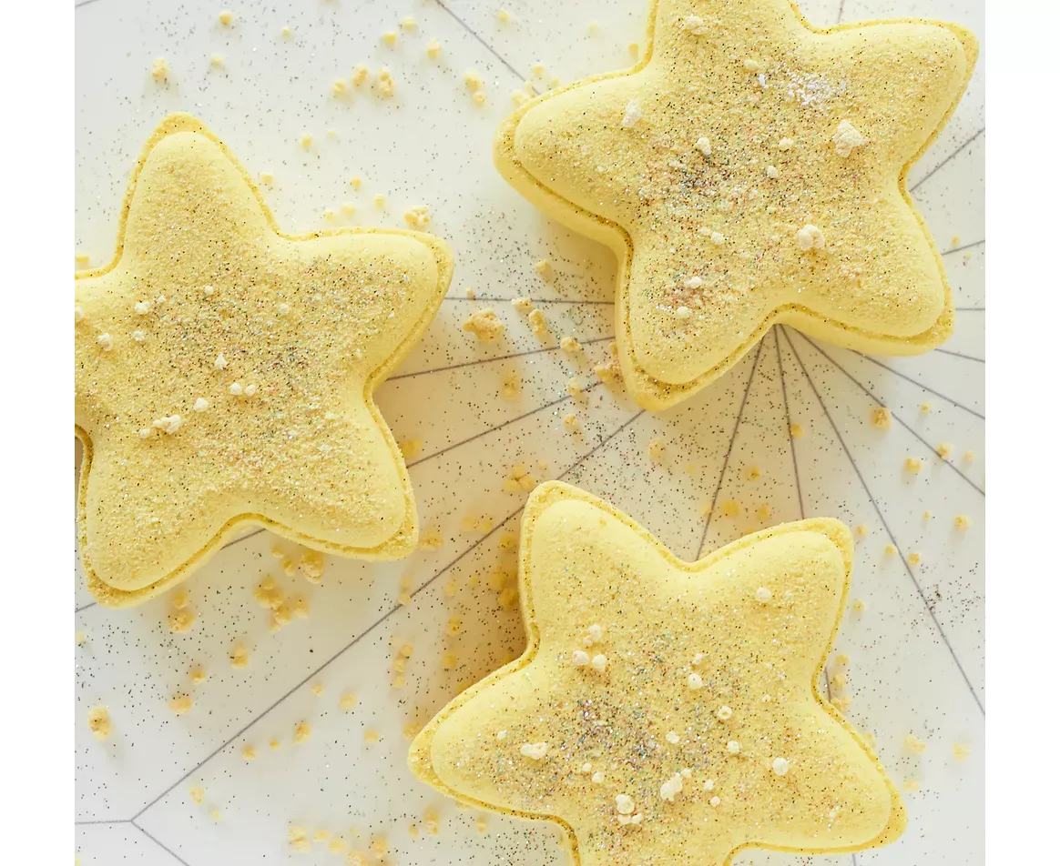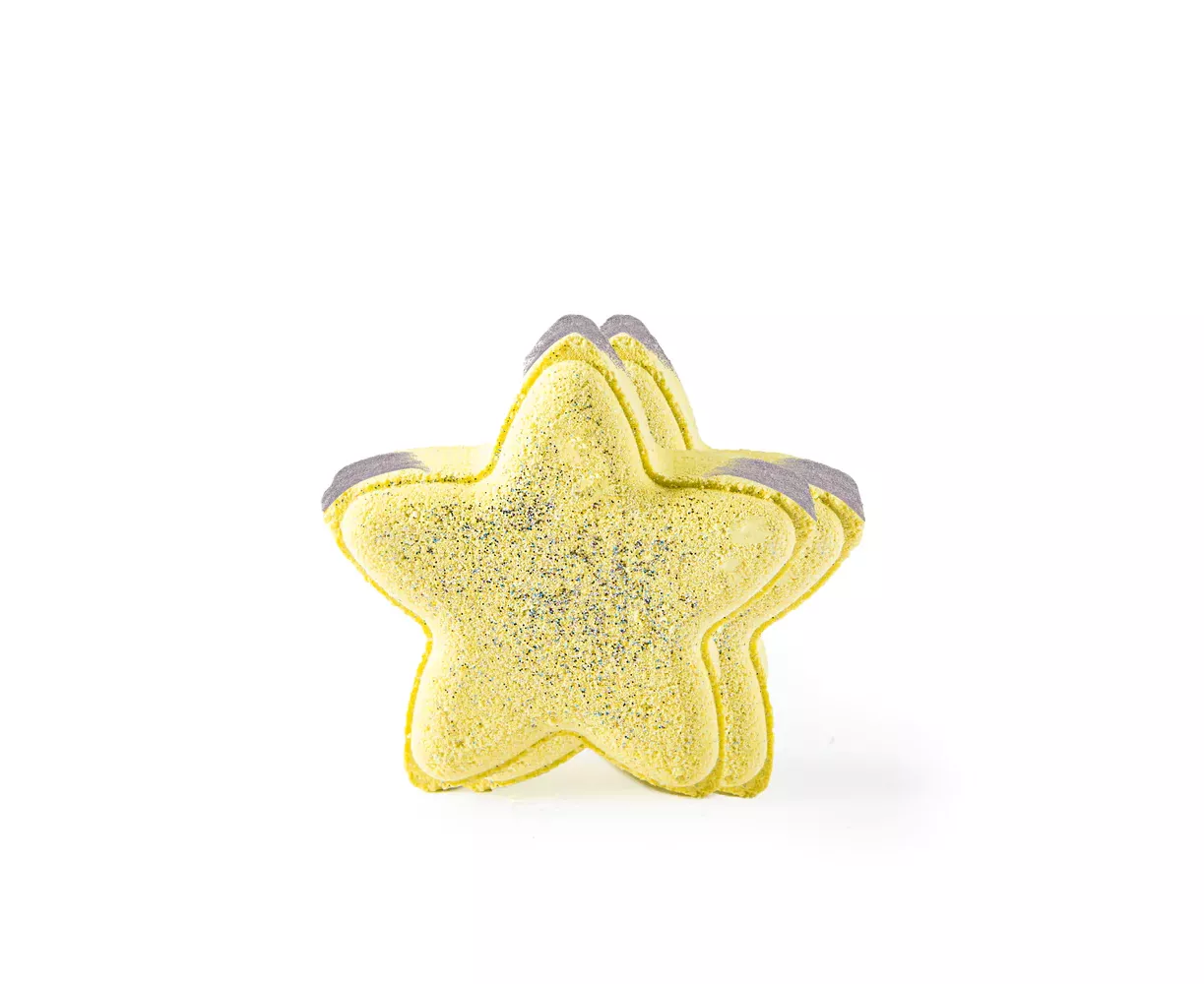 Our little super 'star' fizzy bath bomb that's going to make bathing a fun bubbly play time. As you put the fizzy into water, it releases multi-colors from all its sides and makes your tub a beautiful, fun-filled bathing haven.