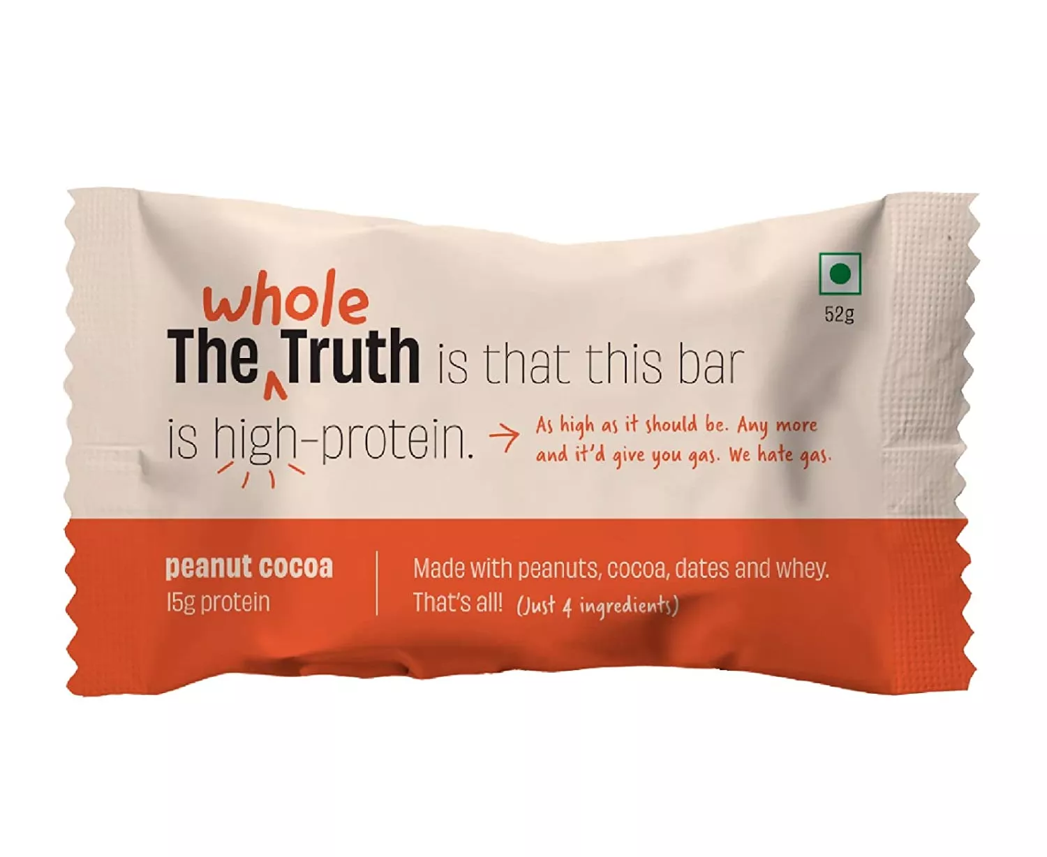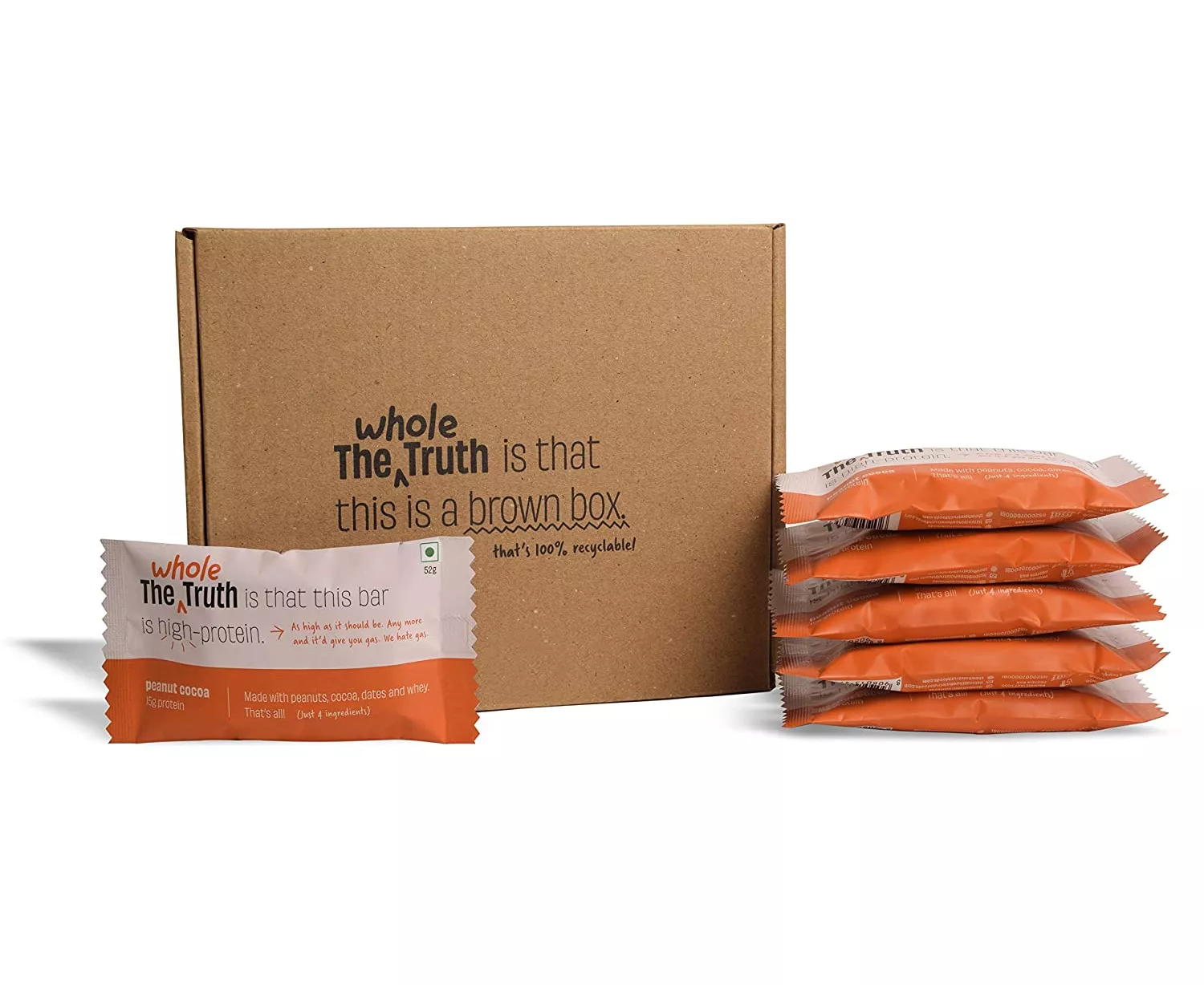 ذا هول تروث بار البروتينs Peanut Cocoa علبة of 6 x 52جرام مكونات طبيعية