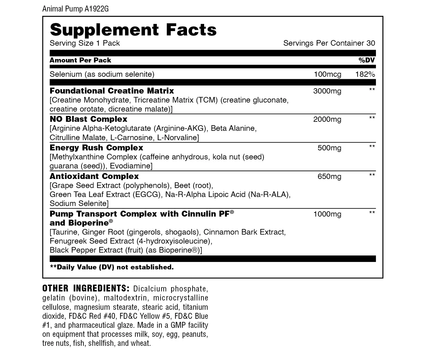 We chase the pump, just as much as you do. On the weight room floor, it makes us feel alive. It made us fall in love with the iron in the first place. There’s nothing quite like it. And it was the pursuit of that feeling that motivated us to formulate Animal Pump. The “pump” is perhaps the most important physiological process as it relates to the bodybuilder and the pursuit of muscle-building. Not only is it the gratifying feeling of skin-tearing fullness that keeps iron athletes returning to the gym day after day, it is also the means by which oxygen and nutrient-rich blood engorges working muscle, feeding it so that it can grow. Not only does it make you look bigger, blowing up the target muscle group like a balloon, it actually makes you bigger, triggering the process of anabolism. This process of muscle volumization is critical to muscle growth. With Animal Pump, we at Animal designed a formula specifically to “up the volume” while improving performance. Animal Pump was the first encapsulated pre-workout formula that contained a full daily dose of advanced creatines in each pre-dosed pack, fortified by vasodilation ingredients intended to maximize the pump by boosting nitric oxide (NO) production. One of the standout points of differentiation for Animal Pump is that it is one of the very few encapsulated pre-workout formulas, for those who tire of the traditional powdered drink mixes. Consequently, for those sensitive to caffeine or those who train at night, Animal Pump provides all of the stimulants in its formula in a single, easy-to-identify red capsule, further setting it apart from the competition. Leave the stims in, or take them out and save them for later. The choice is yours. That's flexibility you rarely find in traditional bodybuilding supplementation. Easy to use, convenient to carry in your pocket or gym bag, Animal Pump delivers in the gym, every time. Blowing up your muscles and helping you destroy the weights, there's no feeling quite like it. Animal Pump... It's the pump, in a pack.