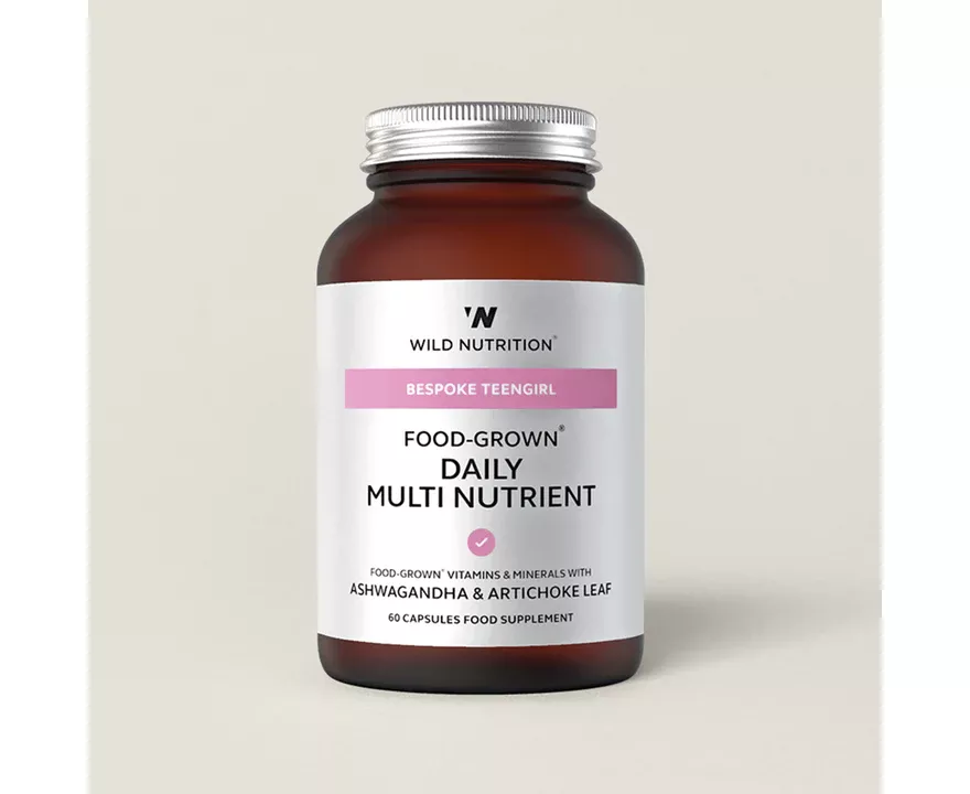 Wild Nutrition Food-Grown Daily Multi Nutrient Teengirl is a unique complex of Food-Grown® vitamins, minerals and botanicals formulated for teenage girls. Providing iron for energy and immunity, vitamin B6 for hormone support and Calcium and Vitamin D for healthy bones and teeth, Food-Grown Daily Multi Nutrient is an expertly designed, supportive and beneficial formula for girls in their teens. Food-Grown Daily Multi Nutrient Teengirl benefits from organic ashwagandha and organic artichoke for natural reinforcement during a time of rapid development.
